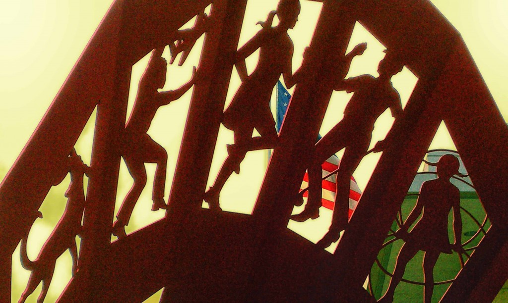 Over the weekend I spotted some art in a public place. The giant sculpture was something to look at, for sure, but the American flag waving behind it was what caught my eye.