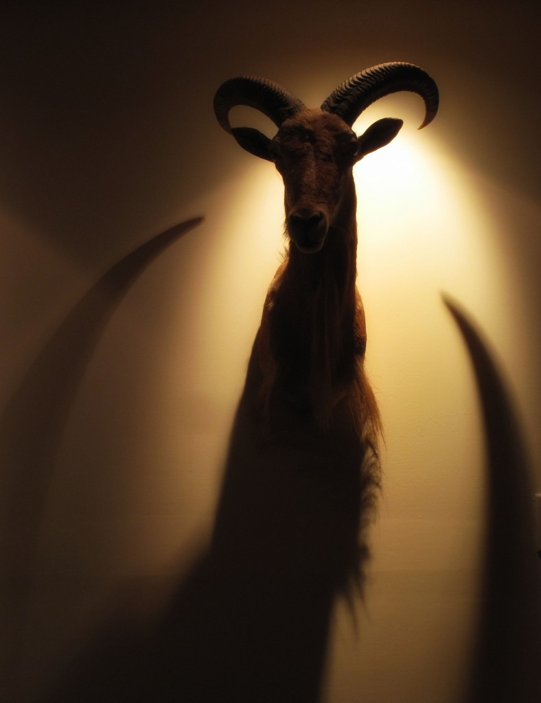 We moved Clyde to a new spot in the rumpus room and now a light hits him just so. Mister was the first to notice his shadow turns him into Devil Clyde.
