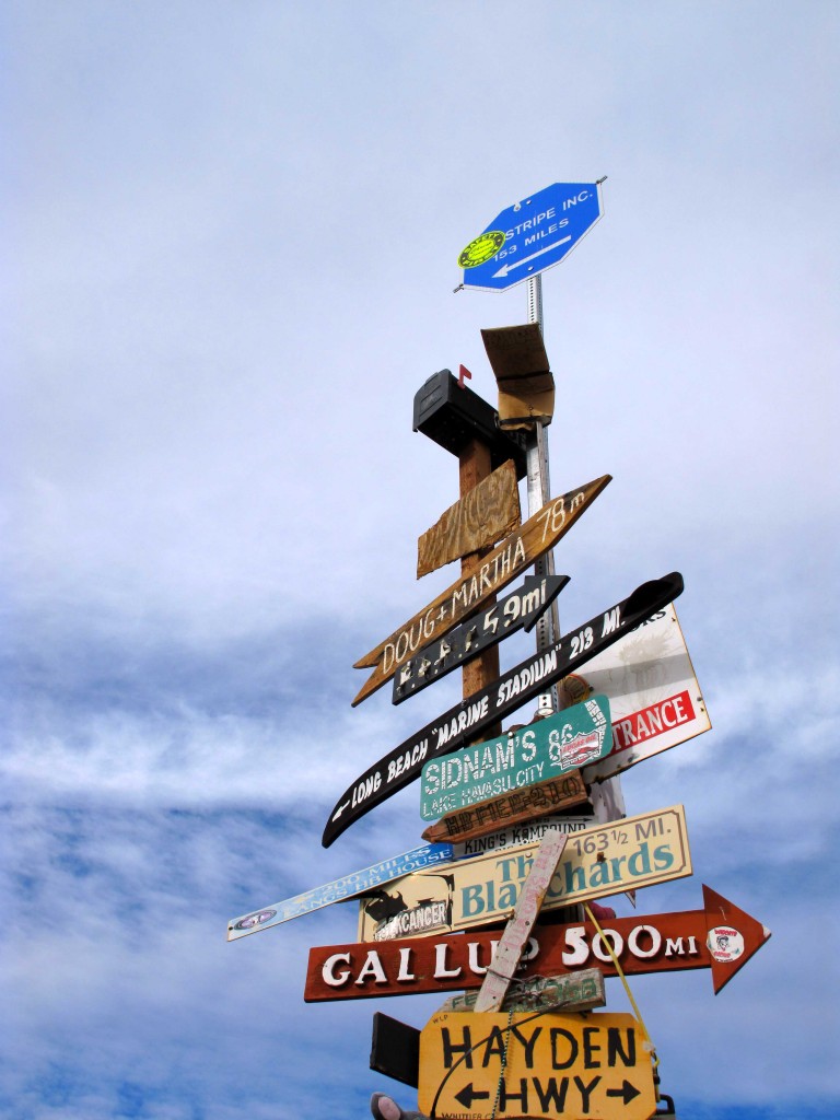 There were dips, however. Big dips. Roller-coaster dips. Mister and I were cruising along, losing our stomachs to our throats, only to settle down for a mile or so before the dips started up again. And here was the funny thing: about every 10 miles there was a sign reading “Dip.” And that particular dip would be so minuscule as to make us wonder why a sign was posted at all. The other dips, however, were mondo. And around those puppies? Nope, nary a sign in sight.