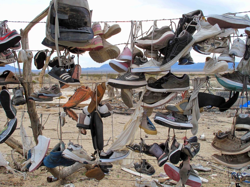 What I wondered was this: how the heck did that first person decide to attach shoes to a barbed wire fence? Was there a message? Is there a message now? I mean, I tried to glean some meaning from the spectacle. I tried to understand how so many soles might relate to our souls.