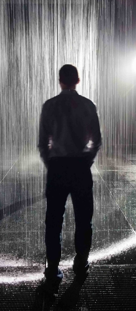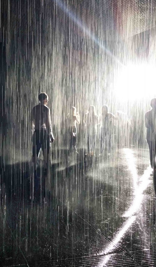 The room was stark, lit by a single spotlight. The rain was pleasantly loud and cool. One by one, we all ventured into the downfall and experienced the magic of Rain Room.