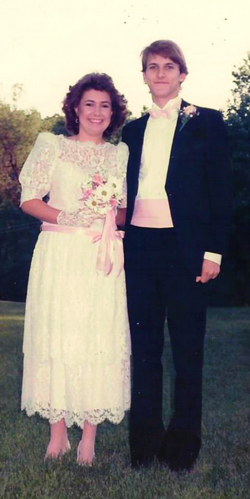 Anyhoo – this was taken the night of senior prom. I was 18 years old and I do believe a permanent wave may have been involved, judging from the look of my hair. The prom dress wasn’t mine. I had borrowed it from Jeanne Velders. My mother wouldn’t allow me to choose my own attire for prom and said she simply wouldn’t pay for the dreamy, black, modest, on-sale frock I wanted. Since I absolutely did not wish to wear clothing of her choosing, I chose to not get a new dress. Enter my friend Jeanne. She saved my bacon and that was that. I will always be grateful.