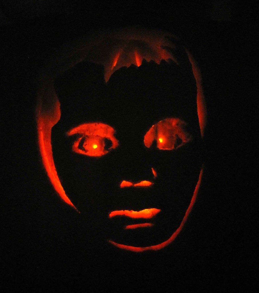 I super-enjoyed the evening as a whole, but I did have a favorite part. After the house kid-lets were back from gathering candy and the flow of costumed stranger-kids had slowed to a trickle, we and our friends settled down and relaxed. That was when our friends’ kid started yelling, “Cupcakes! Cupcakes!” and raced through the house like a mad man. Apparently a neighbor had brought the kid a gift of cupcakes earlier in the day and his mom (our friend) had told him he had to wait until after dinner. And he had. But when he got the all-clear for that sugar rush, the kid flipped! He sat out on the front porch, watching the few remaining trick-or-treaters and gobbling that cupcake. One of our friends popped in and told us all to come check out what was happening. We walked outside and that’s when we saw it: black frosting all over the kid’s mouth.