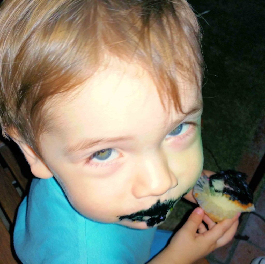 For the record – the frosting stained his little cheeks and fingers and it was a hoot. Personally, I’d like to send a note of gratitude to that cupcake-baking neighbor. Thanks to her, I got one heck of a big belly laugh that night.