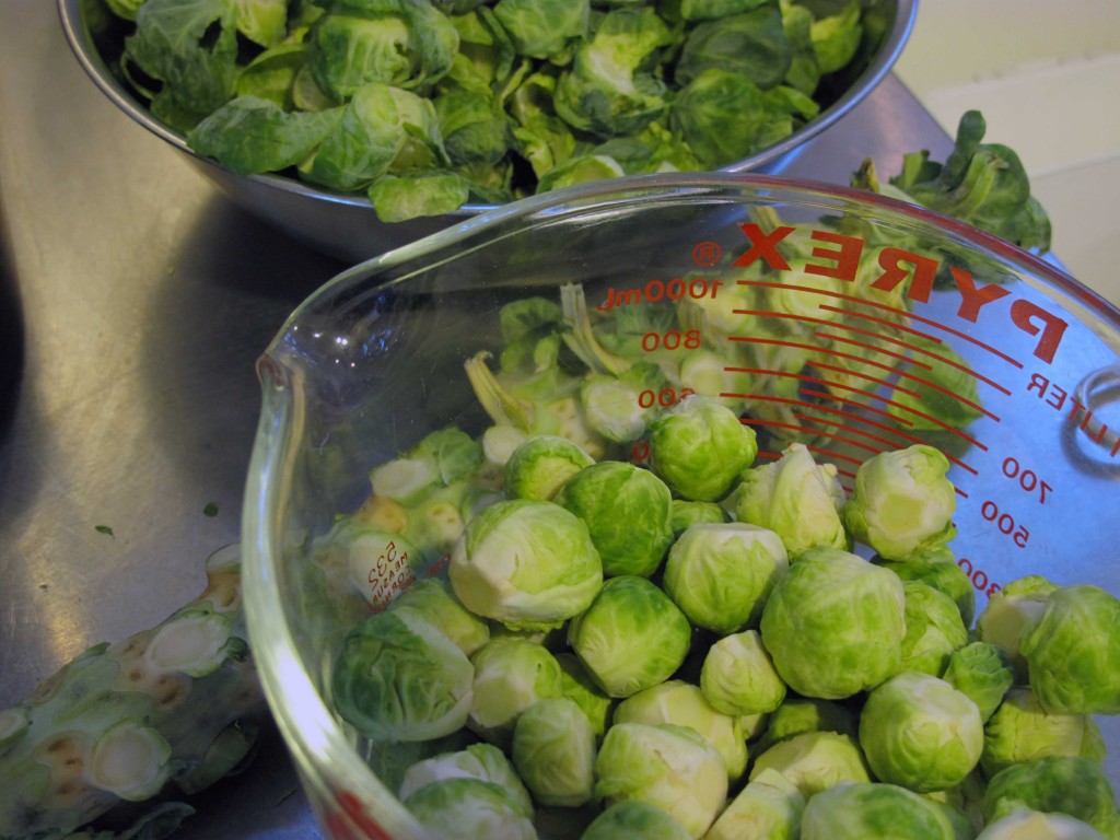 - 6 c. Uncleaned, Raw Brussels Sprouts (should yield 4 to 5 c. Cleaned Sprouts)