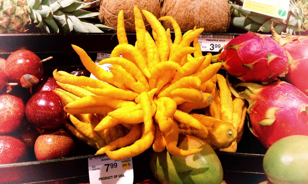 So I saw this at the supermarket and was gobsmacked. It’s called a Buddha Hand and it’s a variety of citron fruit. From what I’ve read online, it’s like a citrus fruit without the juicy bits inside. In other words, it’s mostly peel or rind.