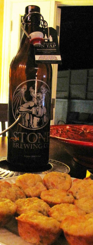 Baker Jen had been in San Diego a few days before and she’d stopped by Stone Brewing Co. for some – what else – beer. Having procured 2 liters of special tap (Old Guardian Oak-Smoked Barley Wine and Punk Style Scottish Ale), she headed back to L.A. and realized she needed to drink that high-alcohol-content brew in 7 to 10 days, for the sake of freshness. After she contacted me for imbibing help, I offered up some ribs and the rest, as they say, is history.
