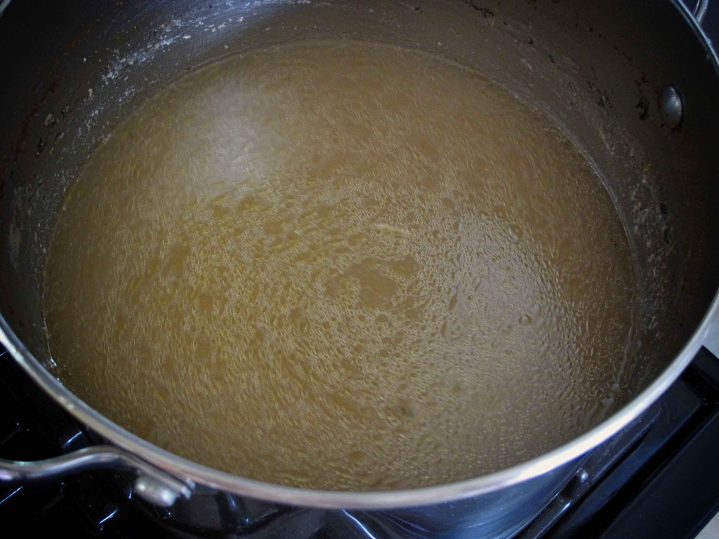 What’s left behind is a beautiful broth. Bring it to a simmer, please.