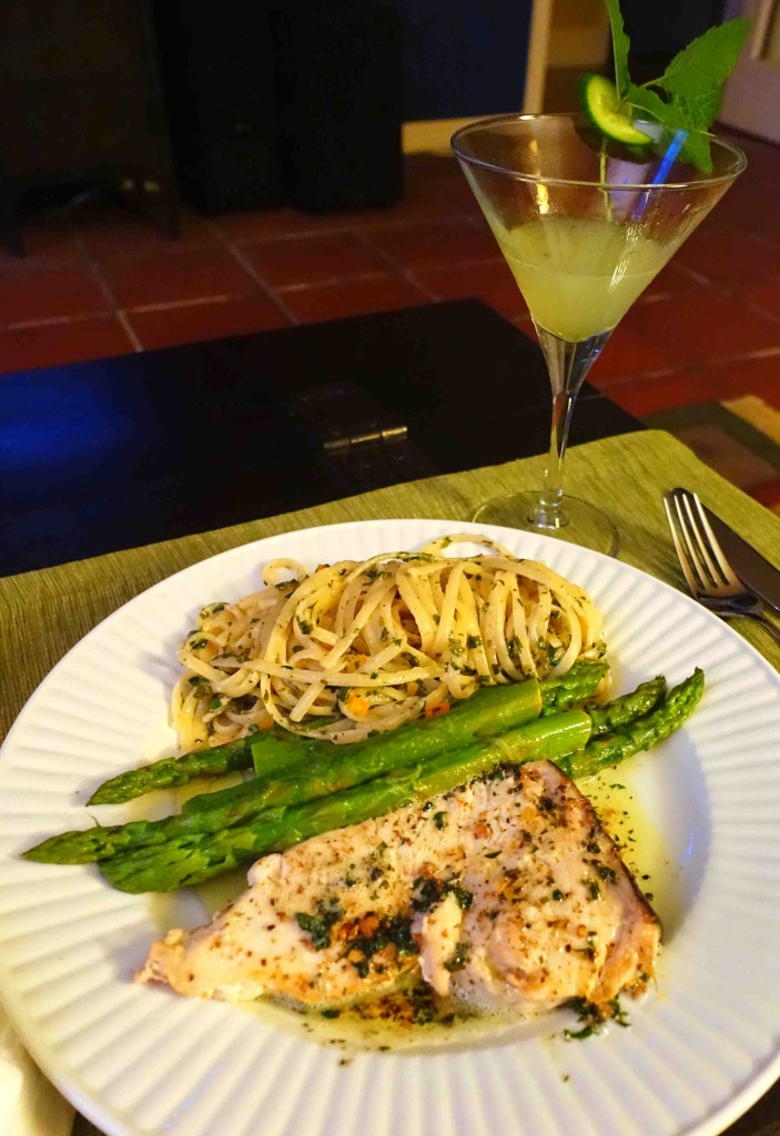 Friday was Mister’s birf-day and he got a nice dinner. Saturday night found us ordering in – pizza. Sunday Supper was pretty spectacular, too.