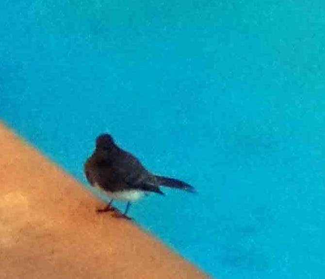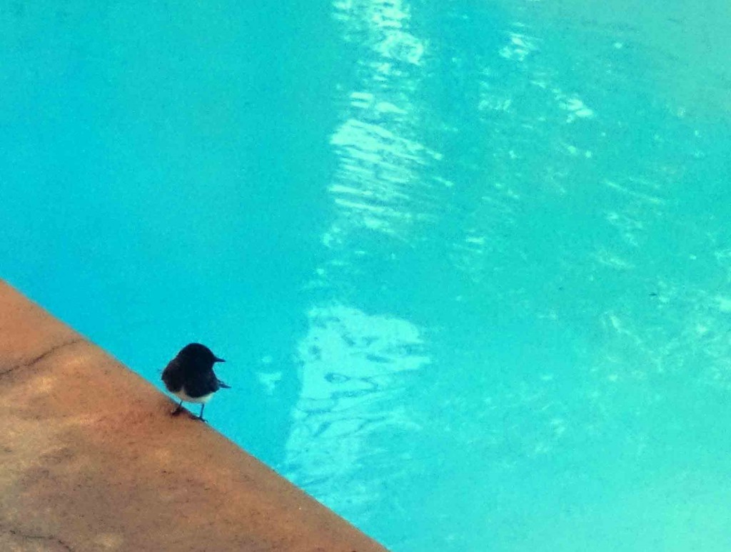 Mister and I have noticed a crazy bird hanging out by the cement pond. This little dude sits on the side for a while, then dive-bombs his own reflection. About a jillion times. Seriously – he can’t resist himself.