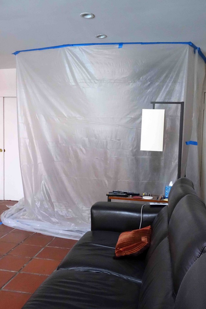 Well – Mister and I have decided we no longer wish to live with a hole in our wall. Instead, we are choosing to live with an actual fireplace, friends. And as we’re dealing with fire (and safety), we’ve engaged a professional to do the parts that matter and may ultimately keep us alive. But there was a bit more demo to do, before the pro could come in. To that end, we set up a “Dexter” Kill Room dust containment area and set to work.