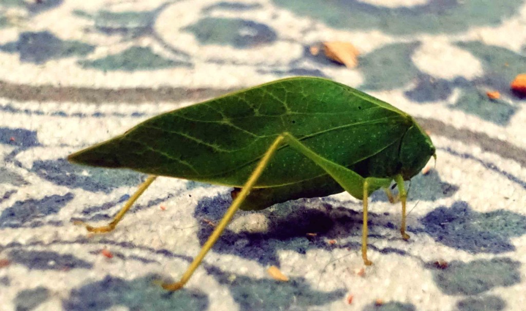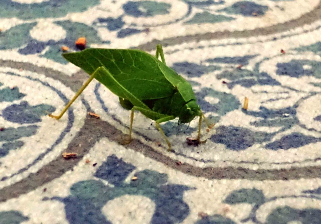 Only it wasn’t a leaf. It was a katydid. And he was fabulous. I took a few photos of the little guy and he was quite the patient subject. I thanked him for his time and went back inside. Now ordinarily, I would have assigned a moniker to that dude. I don’t know why, but that’s how I do. But for some reason, this time I didn’t. I didn’t give him a name. And I really think he wanted one! After I’d gone inside, the little guy started walking toward me, as if I had been his study subject and he hadn’t quite finished. I quickly reabsorbed myself in my task and soon forgot about the unnamed katydid.