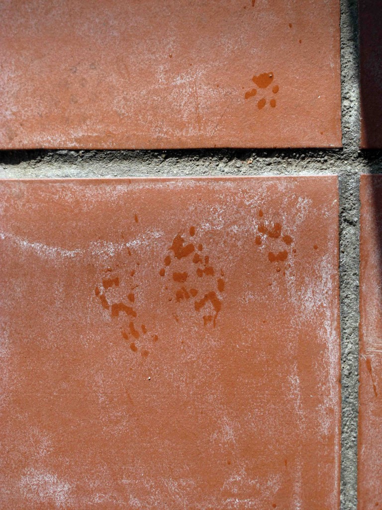 I didn’t grab the camera quickly enough to snap the little rodent, but I did get a pic of his little wet tracks.
