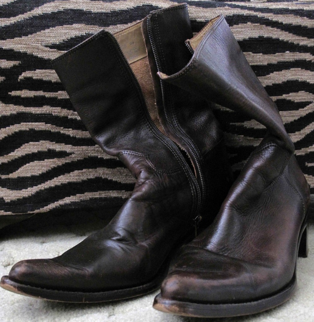 It finally slipped below 80 degrees here in Los Angeles (it even rained, yo), so I pulled out my boots. And when I did, I thought about how long I’ve had this particular pair of boots. And how they’ve had a face-lift during their tenure with me.