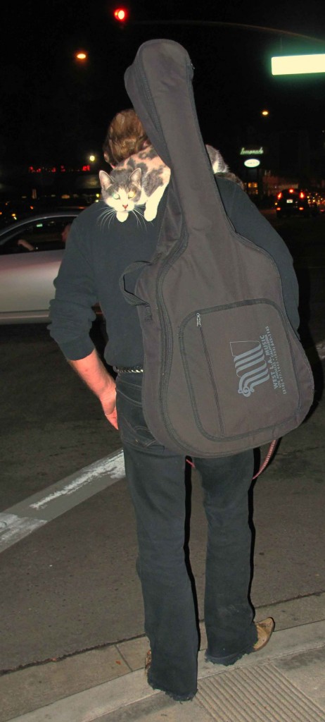 But for some reason, cats keep popping up in my life and in my photos. There’s the above pic, which Mister snapped in L.A. one night. There’s this photo, too, of my friend’s new 3-legged kitten, Trinity…