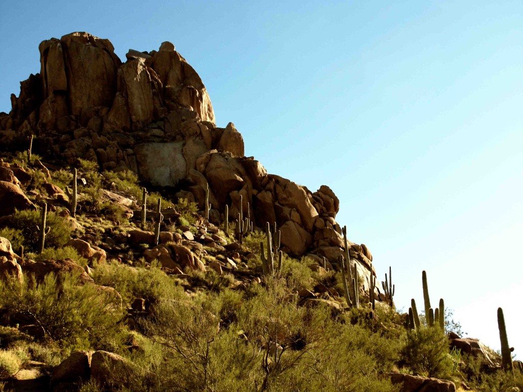 This particular hike took place in Pinnacle Peak Park, and man oh man is it spectacular. Living in La-La Land, I’ve become a bit jaded when looking at vistas and backdrops. So much of what I see around home is fake. So when I took a gander at the surroundings of Pinnacle Peak, I wondered if it was real. I mean, the terrain looked like a freakin’ professionally landscaped garden! How was I supposed to believe my rods and cones were accurately interpreting a natural, random landscape? But then I thought about it and decided Mother Nature is surely the ultimate gardener, so there you go.