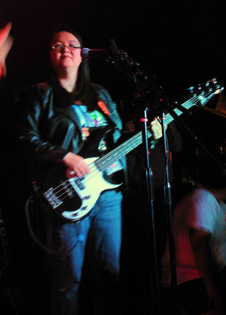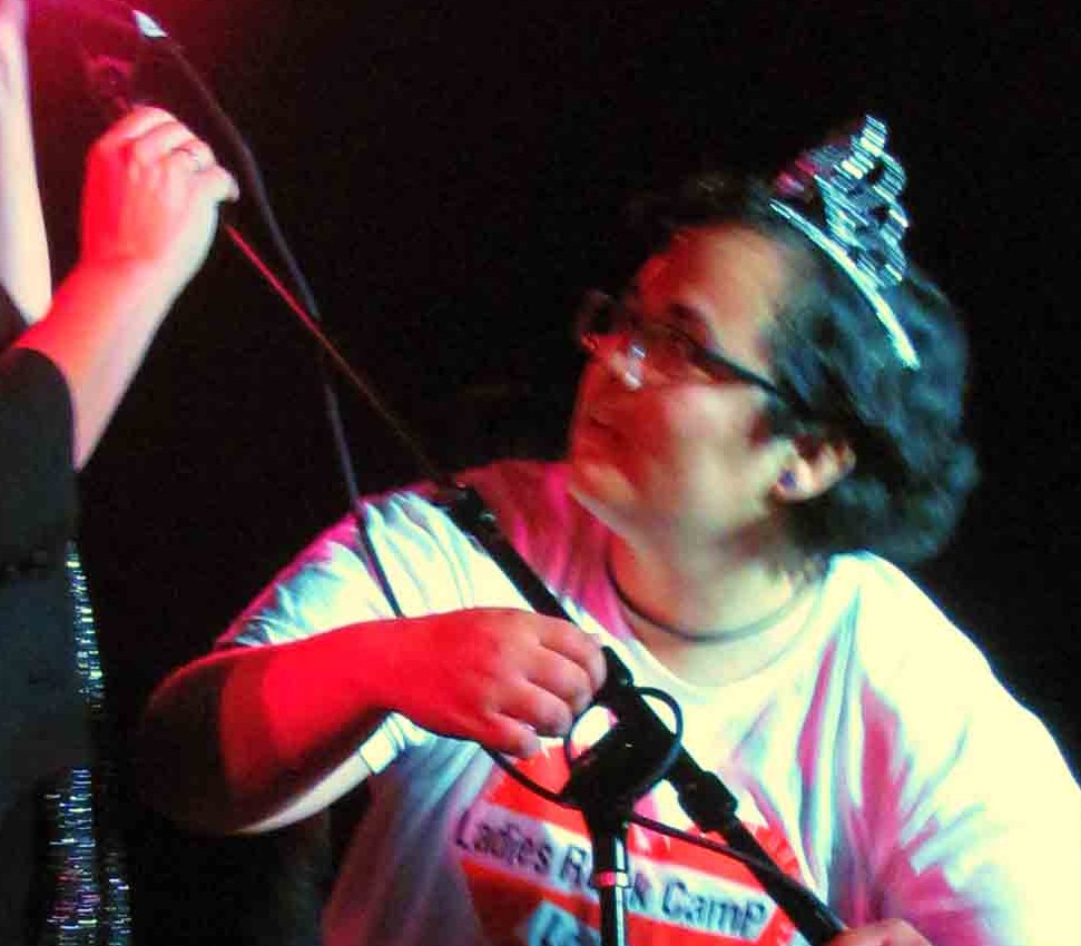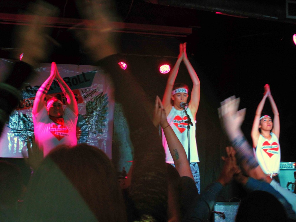 Mornings at Rock Camp begin with Punk Rock Aerobics. This serves to loosen up the campers (and the volunteers), as well as warm up our bodies for the day’s activities. For giggles, we start our showcases the same way. So as we all began following Captain Chaska’s on-stage moves, I looked around the club. Men, women, old, young – we were all doing the routine and there was no judgment. As far as I could see, all were participating and that was cool. Personally, I booty-bumped a rather famous attendee and he just smiled. Why not? We were all smiling, moving our bodies to Enya and Salt-n-Pepa. And then the bands took the stage.