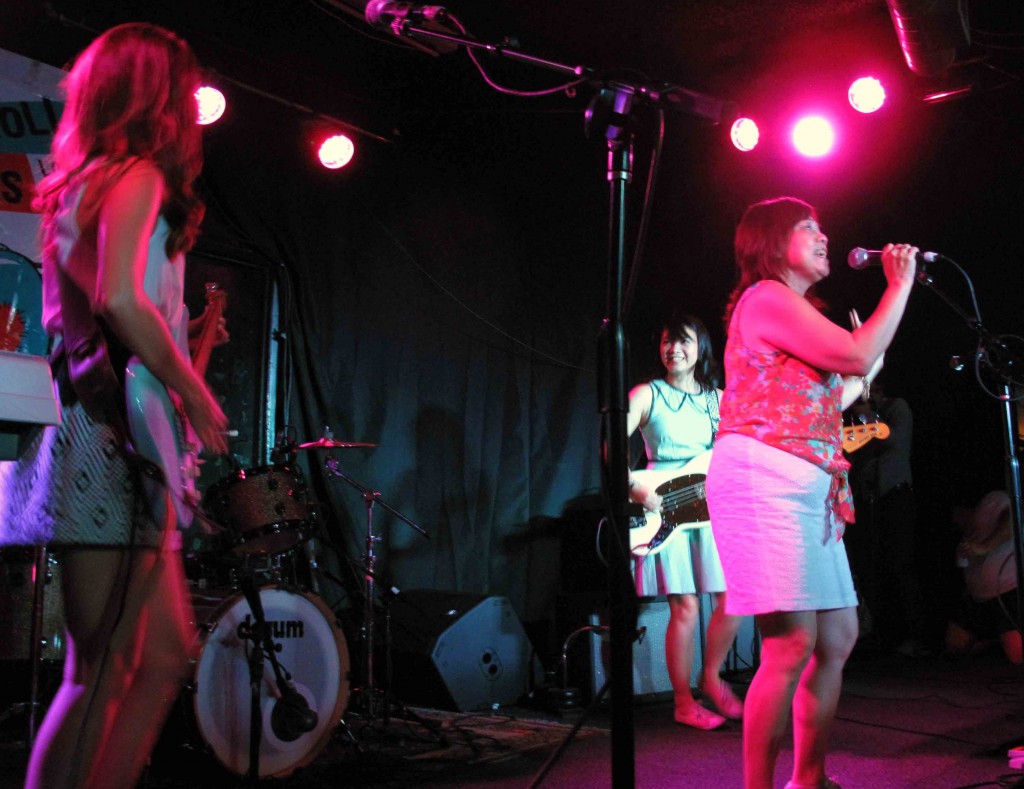 I caught a ride to the club with excellent volunteer and Drum Instructor, Danita. We both were pretty quiet on the way, as we were dog-tired and knew the night was young. Once there, all volunteers got to work to get the club and stage ready. As my two co-vocal-instructors were working hard at other duties, I grabbed all the vocalists (including the chicks who decided to sing while playing other instruments) and we headed backstage for warm-ups. That was fairly quick, as I didn’t want to keep them from their bands for too long. I knew there was nervous energy to be shared with their fellow campers. So after our quick warm-up session, the gals headed back into the club. Speaking of the club, it was filling up fast. And that was beautiful, y’all. Spouses, partners, family members, friends – so many folks came out to support the lady campers. I was mightily impressed. As I looked around the club, smiling, the lights began to dim. The show was beginning…