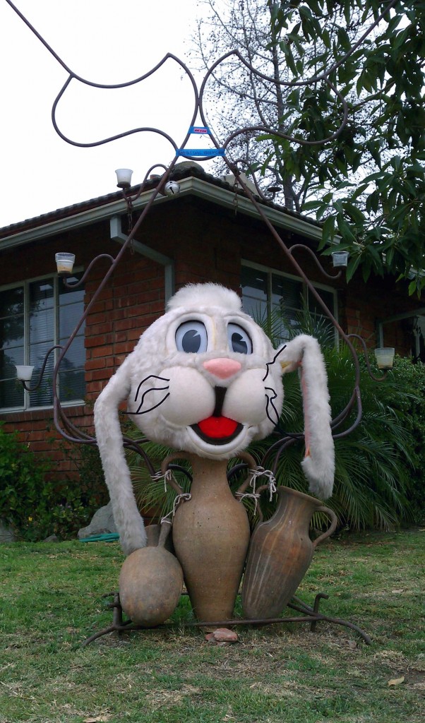 One of the things I noticed the last couple of days is the Rabbit Art in the above photo. This is near the hotel, so I get to enjoy it on a regular basis. Now you may be thinking this is more than a little off (as one friend commented), but the truth is, I like things that are a little off. And I’ve enjoyed the many carnations of this particular yard display. The red Santa pants and headless Santa shirt? Loved that weird thing. The autumnal floral sculpture before that? You betcha.