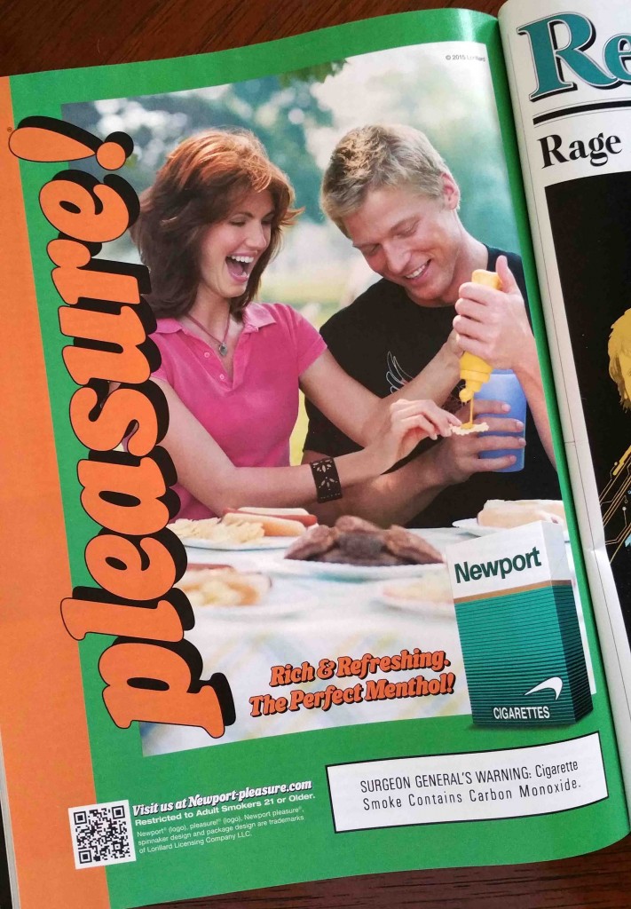 Mister spotted this ad for Newport Menthol cigarettes. Because it is ludicrous in its very existence, I laughed. And then Mister pointed out a detail of the ad…