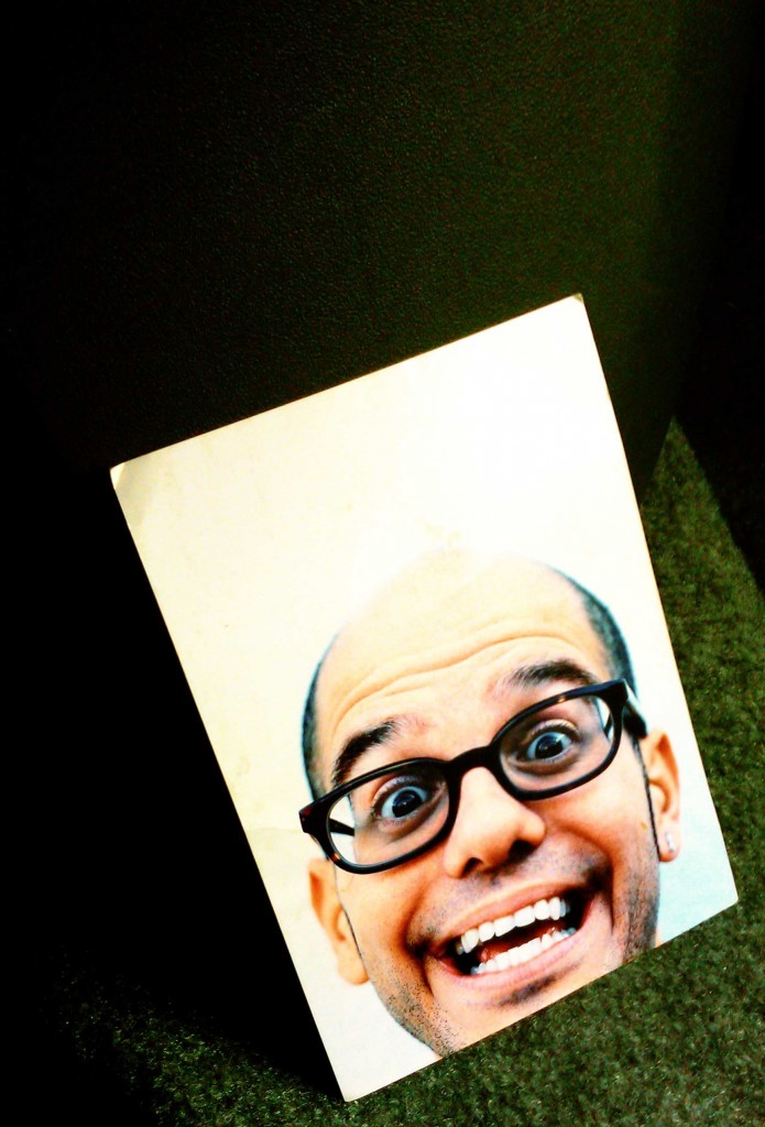 This is what I see each time I get into Mister’s car. He’s had this postcard of David Cross for ages, and it never fails to make me smile.