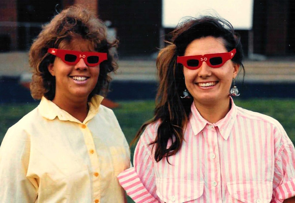 This is an old photo of me with my high school friend, Nance. It was taken – I think – in 1987. We were at an outdoor 3-D movie showing and that’s all I remember. I love that gal. Still.