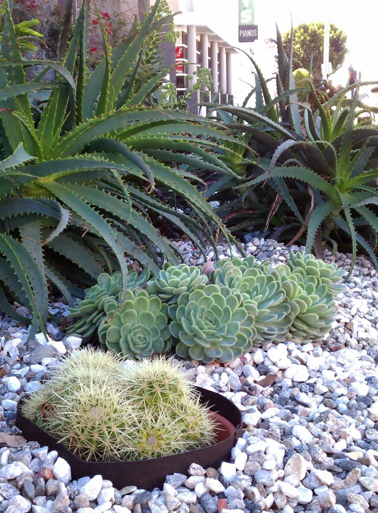 I snapped the above photo in Hollyweird. I’m looking for ideas, and this little garden – on a big, busy street – was calming. I don’t know what kind of watering those succulents need, but I did appreciate the composition.