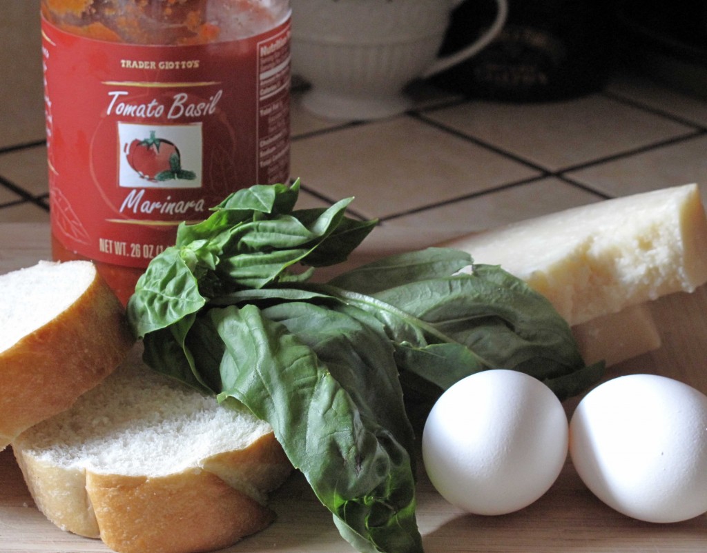 Marinara Sauce, French Bread, Eggs, Parmesan Cheese and Fresh Basil.