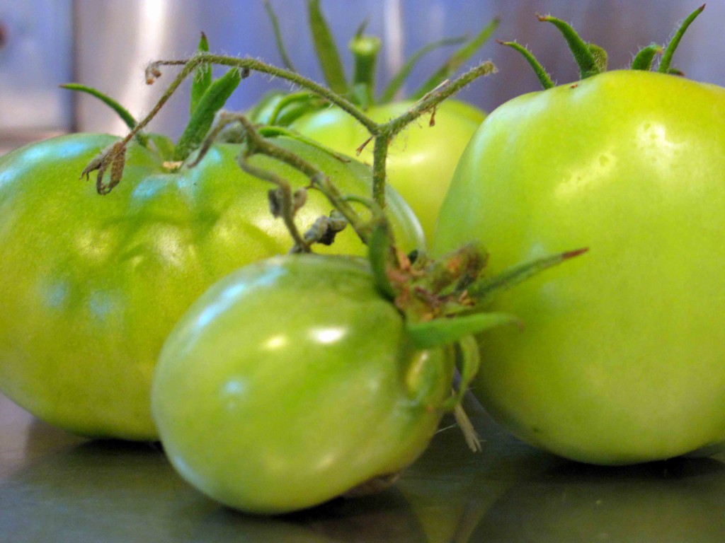 - 3 – 4 Firm Medium Green Tomatoes (Firm! Firm! Firm!)