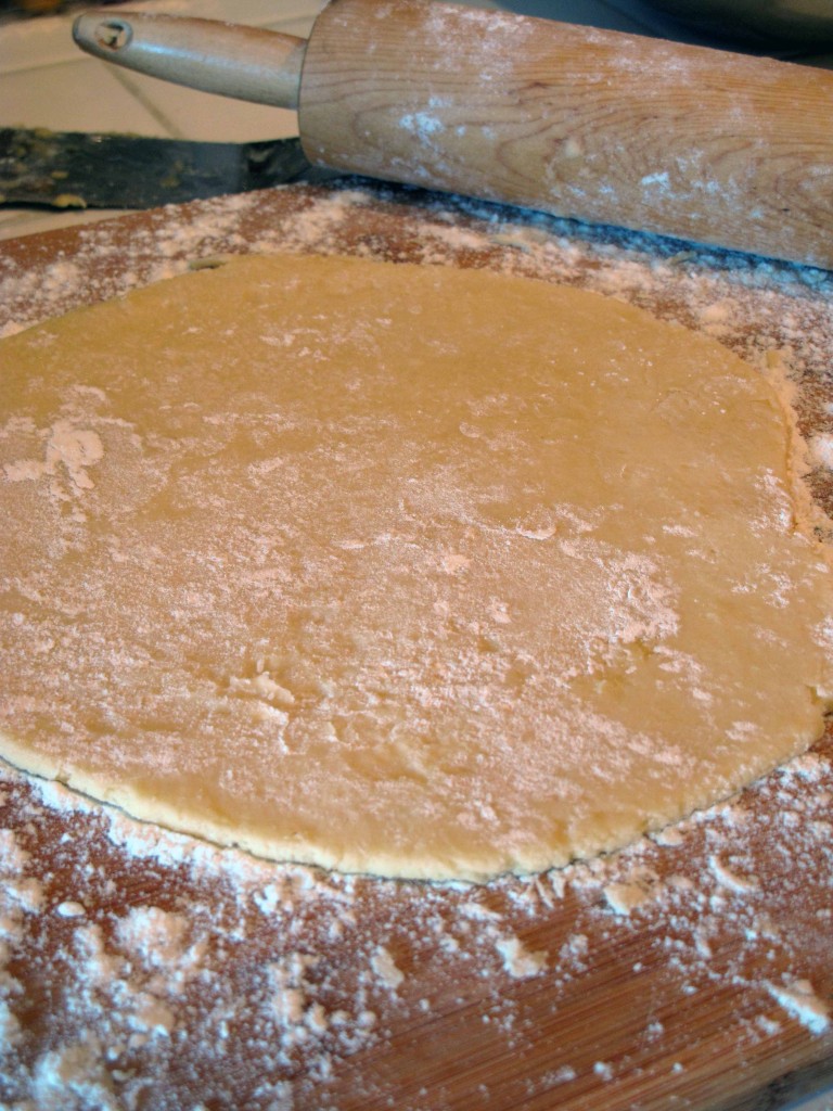 - Remove dough from refrigerator. On a lightly floured surface, with a lightly floured rolling pin, roll dough to about 1/8-inch thickness.