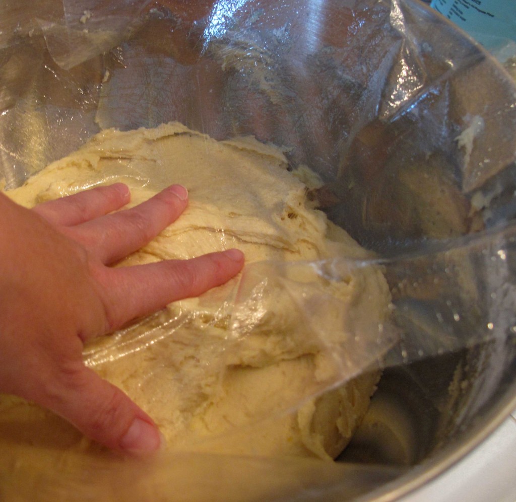 - Once mixed, scrape the dough on to a large piece of plastic wrap. Wrap completely, shaping into a disc as you go. Chill the wrapped dough for at least 2 hours. (Can be chilled overnight.)