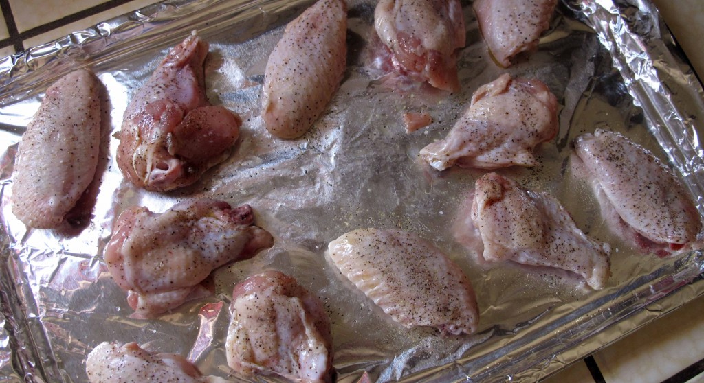 Prepare the wings. If you’ve purchased pre-cut sections, great – skip to the next step. If your wings are whole, as mine were, there’s a little work to be done.
