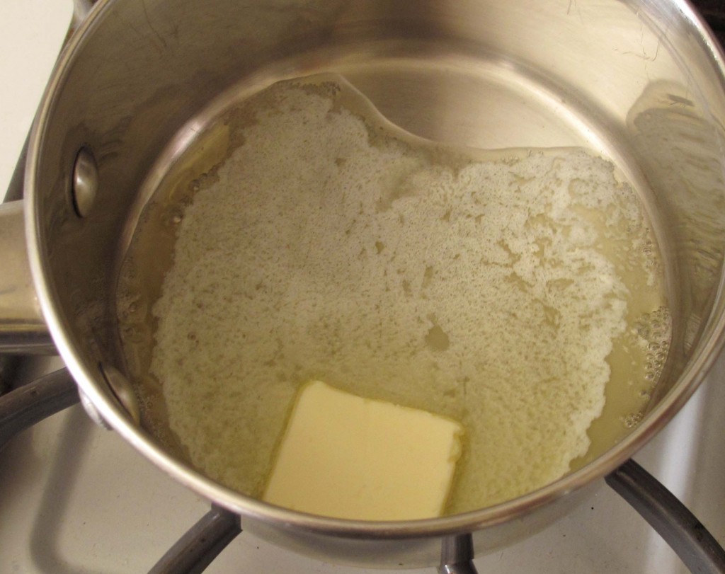 While the wings are baking, make your sauce. Melt the butter in a small saucepan.
