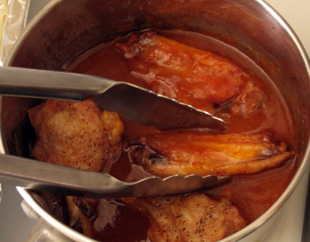You can place all the wings in a bowl and pour the sauce over (which is what I usually do), or you can place a few wings at a time in the saucepan with the sauce. It’s up to you…