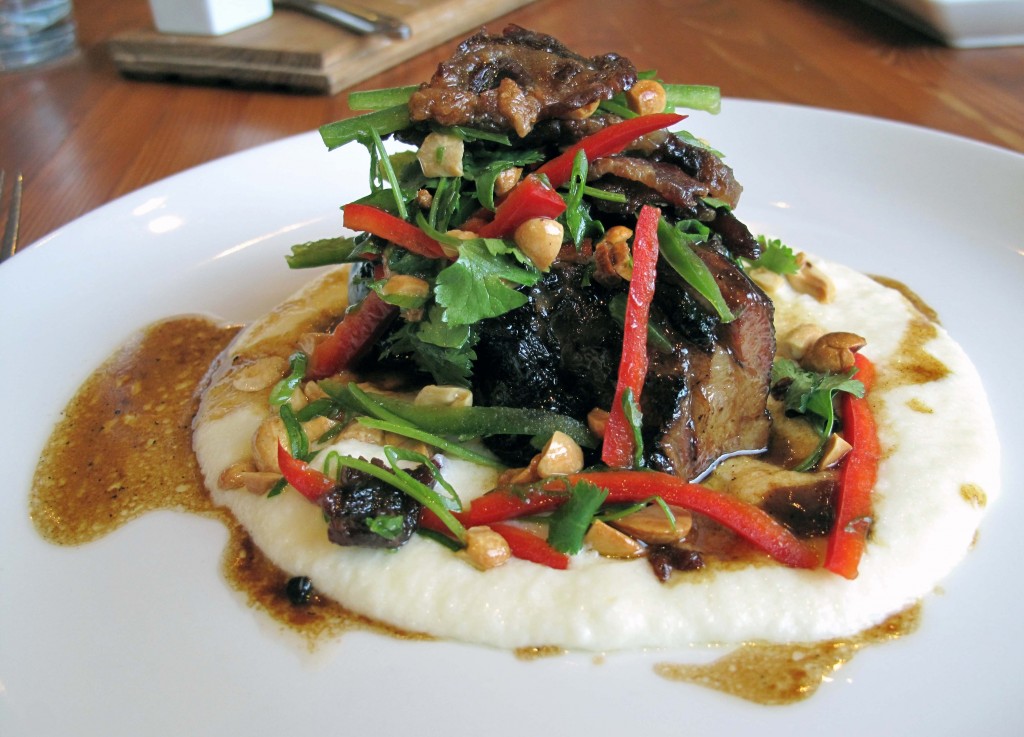 Wood Grilled Ancho Chili Spiced Beef Short Rib. Sometimes when I can’t decide which entree I want, I defer to the sides. “Carr Valley Aged Cheddar Grits” completely persuaded me. This was comfort food at the highest levels and I was happy, happy, happy with my choice. The peanuts sprinkled on top? Not really my bag, but I understood the intent, to add some texture.