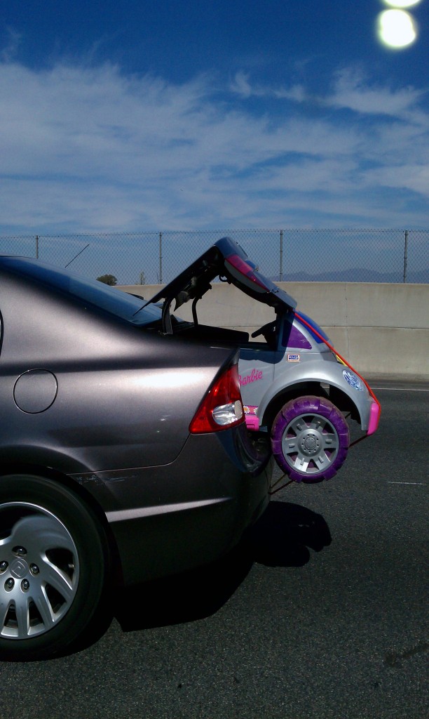 I don’t have anything to say about this photo. I mean, what can one possibly say about a car hanging out of another car’s butt?