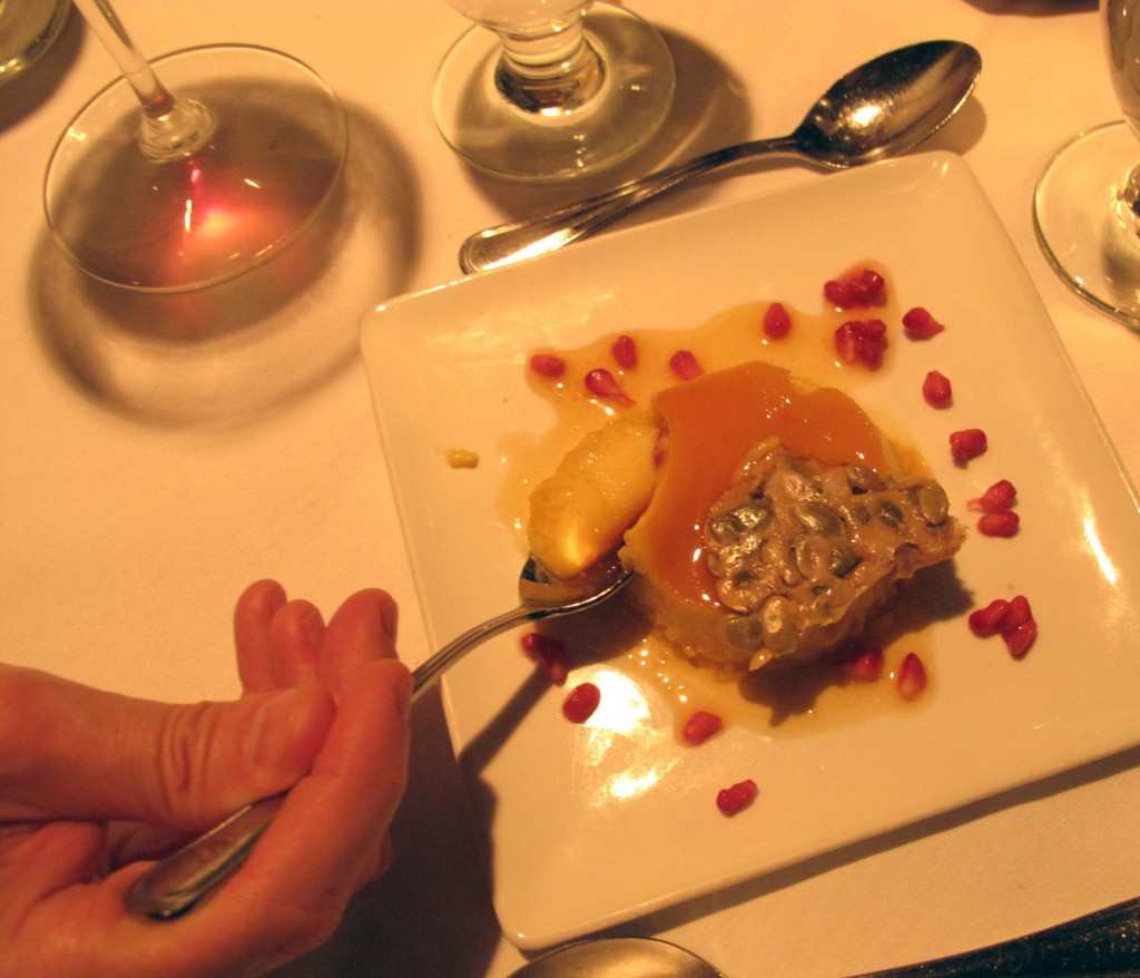I’m gonna tell you right now – I had gone through a glass of bubbles and was starting a glass of Colorado wine (which was amazingly good) before I remembered to take the danged camera out of my bag. By that time, all the appetizers were completely gone. That’s why there are no photos of the pan-roasted foie gras, the slow-roasted pork belly, the kuri squash agnolotti with braised rabbit leg or the lobster mac & cheese. You may not miss the photos, but I do.