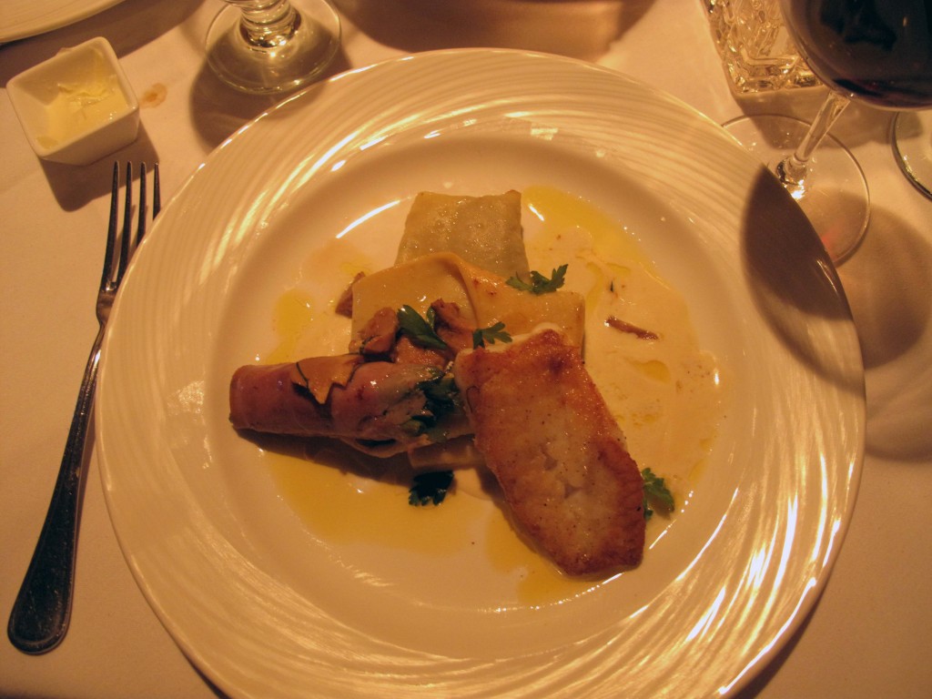 Anyhoo, as soon as the last appetizer dish was cleared, Mister reminded me to take photos. Once the entrees arrived, I took a moment to document the offerings. There was roasted monkfish…